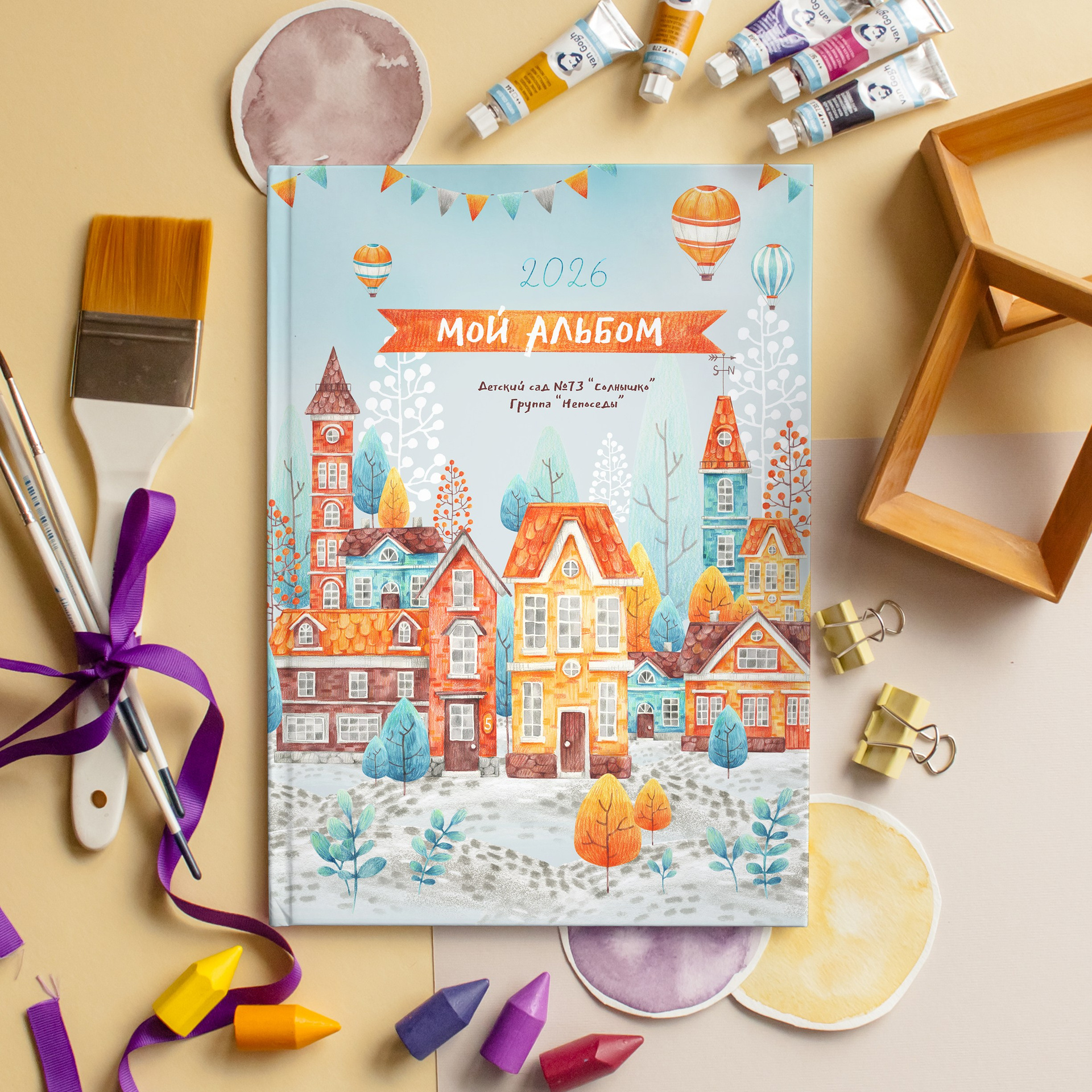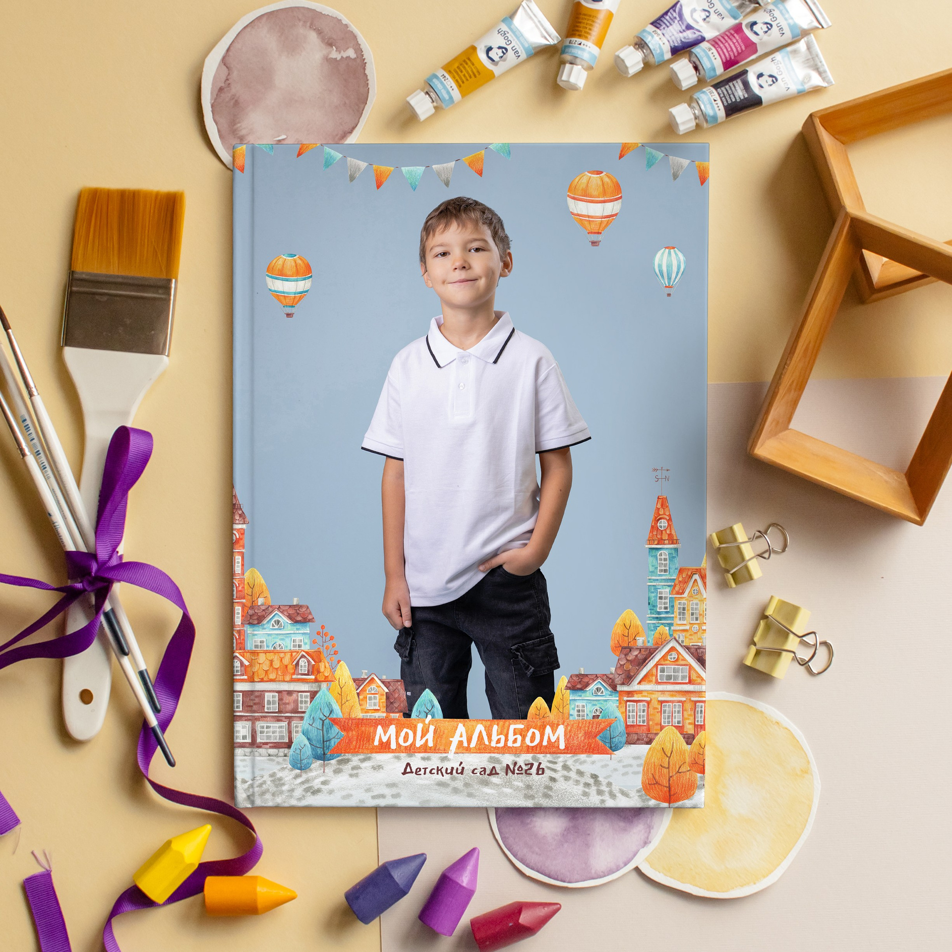 - обложка и внутренние страницы альбома для всех детей одинаковые, кроме портрета ученика на первом развороте.