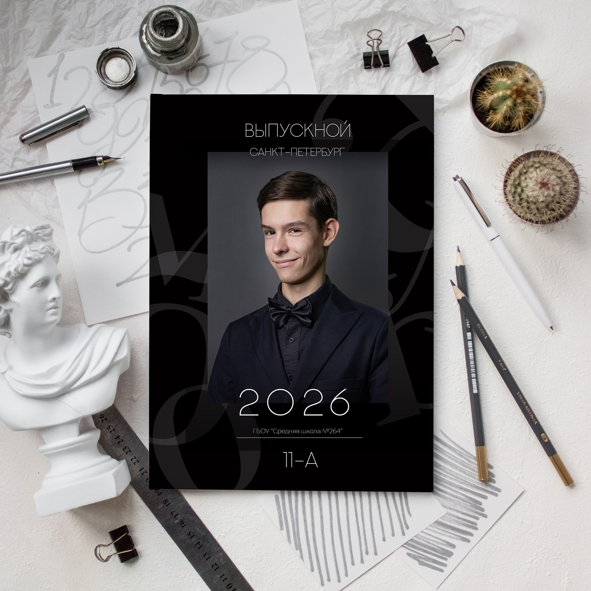 - альбом на 18-24 плотные страницы (зависит от количества учеников), размер 20*30см в твердом книжном переплете, дизайн и наполнение обсуждается с заказчиком.